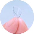 角膜(黒目)には血管が無く、唯一の栄養源である涙の循環や酸素交換はとても大切です。コンタクトレンズの装用により角膜は長時間にわたり覆われてしまうため、上皮障害を起こしたり、角膜透明性を維持するために不可欠な角膜内皮細胞減少させたり、などの危険性を伴います。レンズの性質·構造上、SCLは角膜より大きくできています。角膜をすっぽり覆い、微動はしますが吸着してほぼ動きません。
